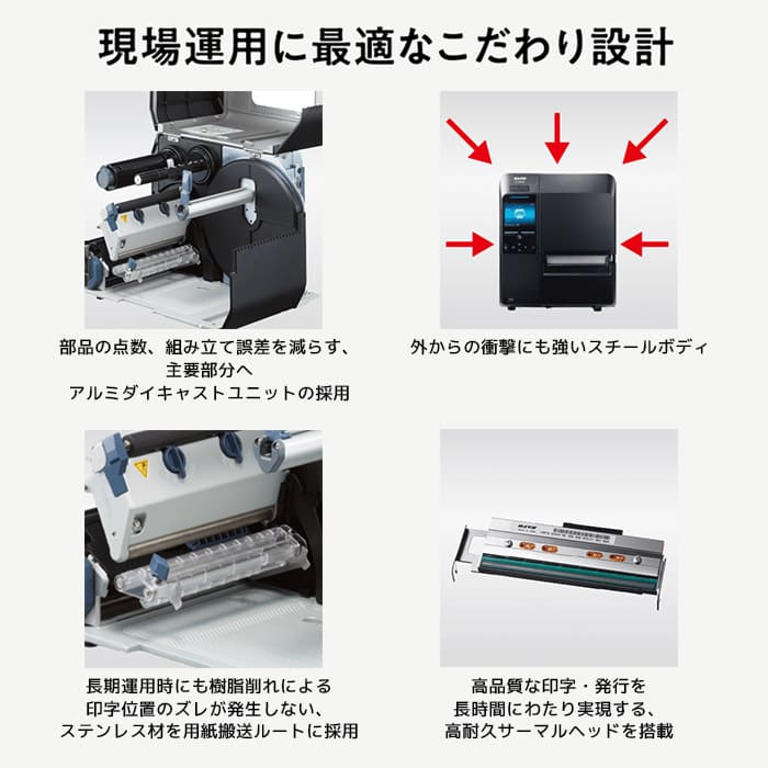 <strong>SATOの「CL4NX-J Plus」は、現場の安定稼働を支える高機能ラベルプリンターです。</strong>感熱・熱転写の両方式に対応し、4インチ幅のラベルまで印刷可能。大型カラーLCDや高精度印字、高速処理により、作業の効率化と品質向上を同時に実現します。