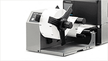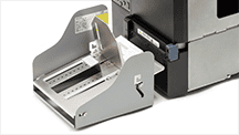 ハクリユニット取付時は、ラベルを剥がした状態で出力します。1枚ずつ貼る運用に適しており、貼り間違いを防止します。ラベルが台紙から剥がれているため、自動貼付装置との連動も可能です。剥離仕様ではラベル剥離後の台紙を外部排出、内部巻き取りのいずれかで処理することができます。