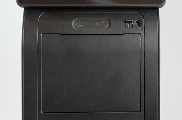 程よいサイズの卓上スリムタイプで、様々な規模の施設のスペースに適応します。施設の受付端末やクーポン発券機、決済POS端末など、幅広い用途で活用できます。