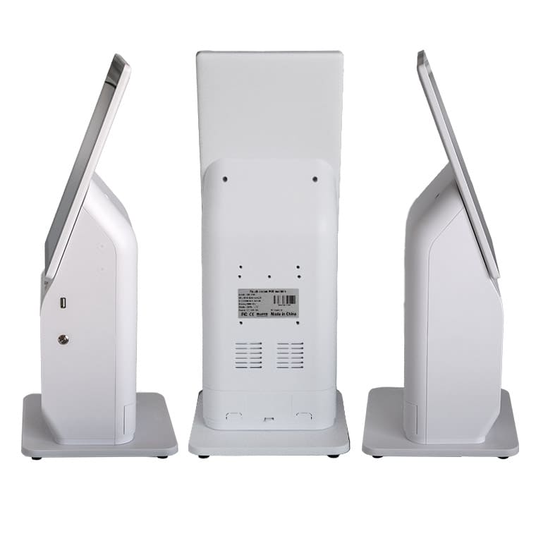 KIO-116はタッチモニター搭載のキオスク端末です。1D/2Dコードリーダーとサーマルプリンターが標準で搭載されています。Windows OS、Android OSの2タイプをサポートしており、用途に合わせてお選びいただけます。
