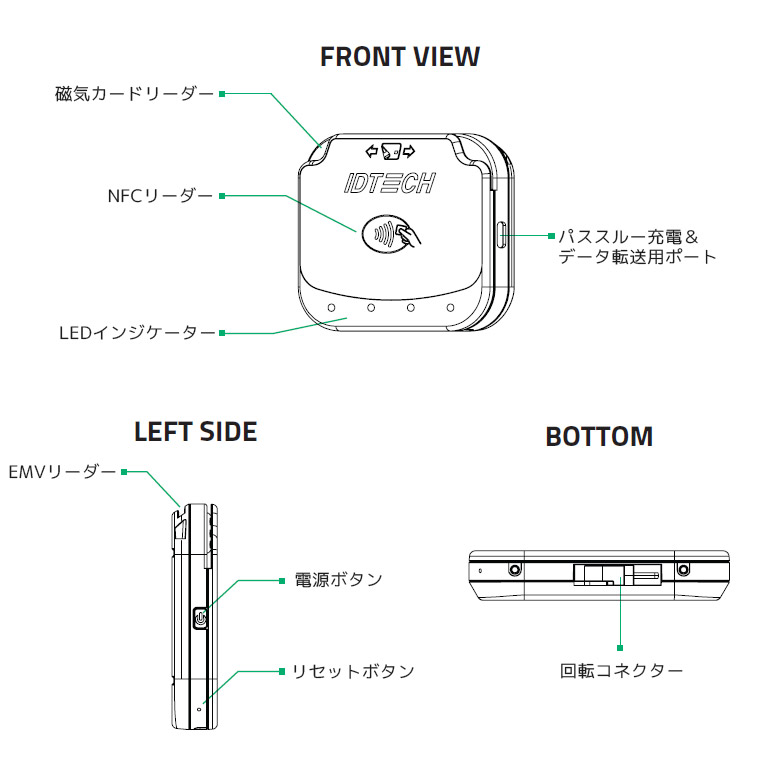 レジカウンターにとらわれない店舗内販売や催事販売において、スマートフォンやタブレットと組み合わせたモバイルPOSとして活躍します。非接触・接触IC・磁気ストライプの全方式に対応しているため、お客様の決済手段を問わず、スムーズな会計を実現します。